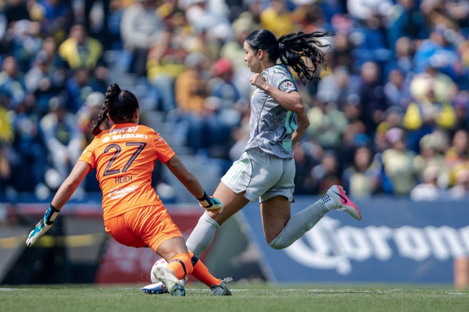 El 1-0 de América fue por el costado izquierdo recibió Kiana Palacios filtró a Nancy Antonio quien entró sola y disparó, dejando a Heidi González sin posibilidad de detener la pelota, y a los 5 minutos, América ya iba ganando.