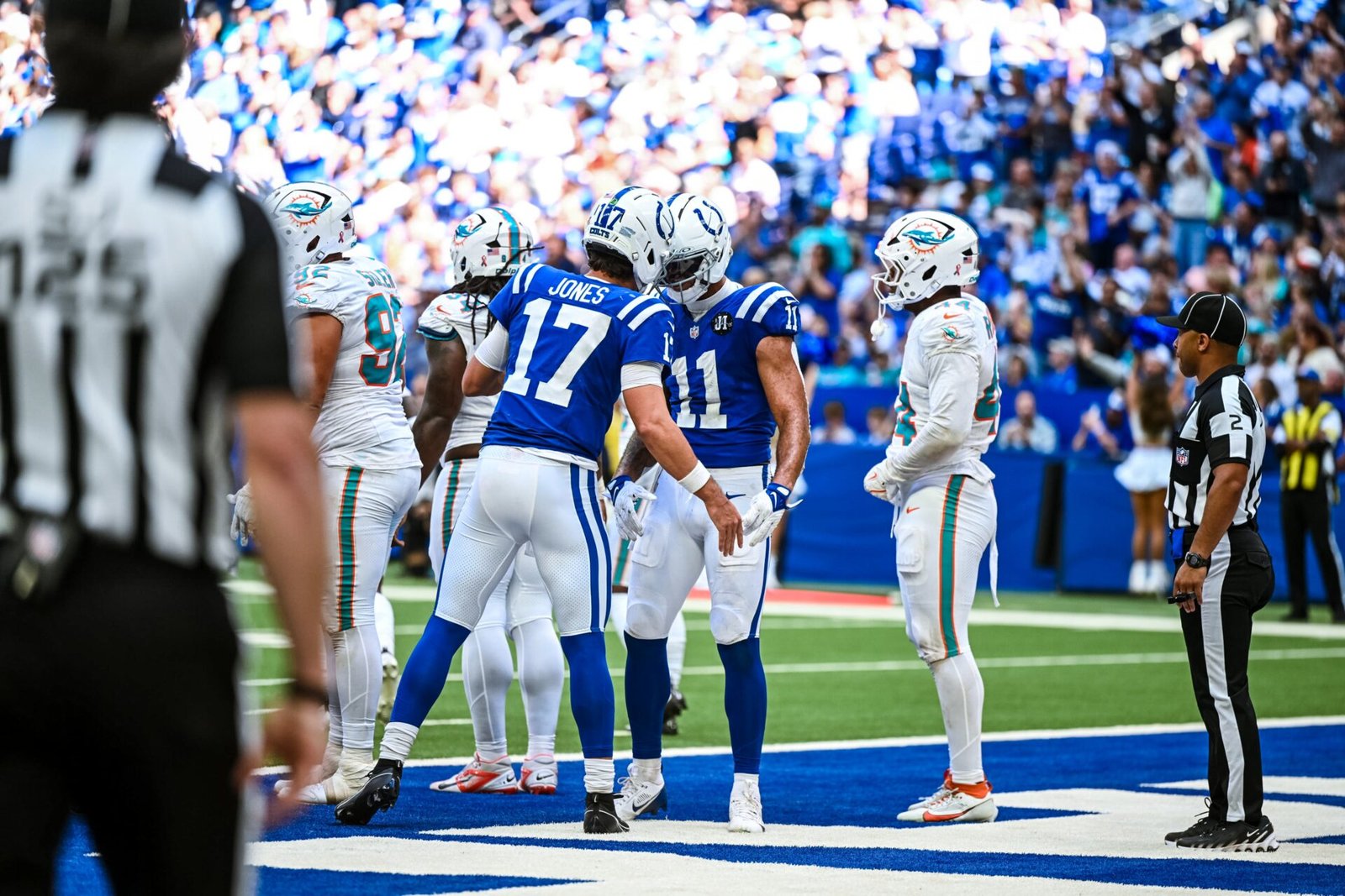 Miami terminó con solo 211 yardas totales y necesitó el fuerte esfuerzo de De’Von Achane en un pase de pantalla en cuarta y gol desde la línea de 11 yardas de los Colts con 6:21 restantes para evitar ser blanqueados por primera vez en cuatro años. Un pase de conversión de dos puntos dejó el marcador en 30-8.