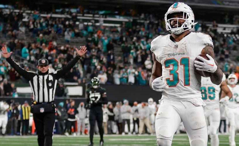 EAST RUTHERFORD.- Tyreek Hill celebró una recepción de touchdown entregando el balón a su nueva esposa en las gradas del MetLife Stadium y los Delfines de Miami derrotaron a los Jets de Nueva York en el primer juego de la NFL en Black Friday dentro de la Semana 12.