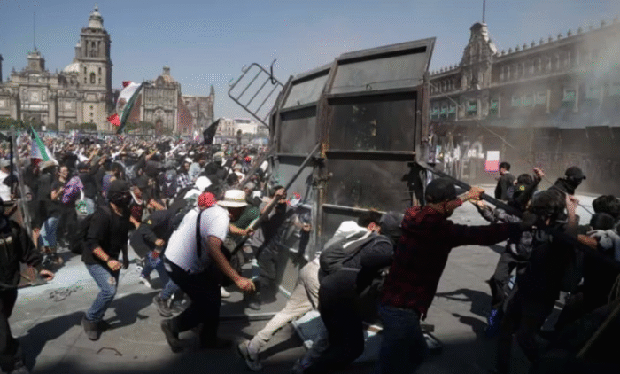 Jóvenes de la Generación Z derriban vallas de Palacio Nacional