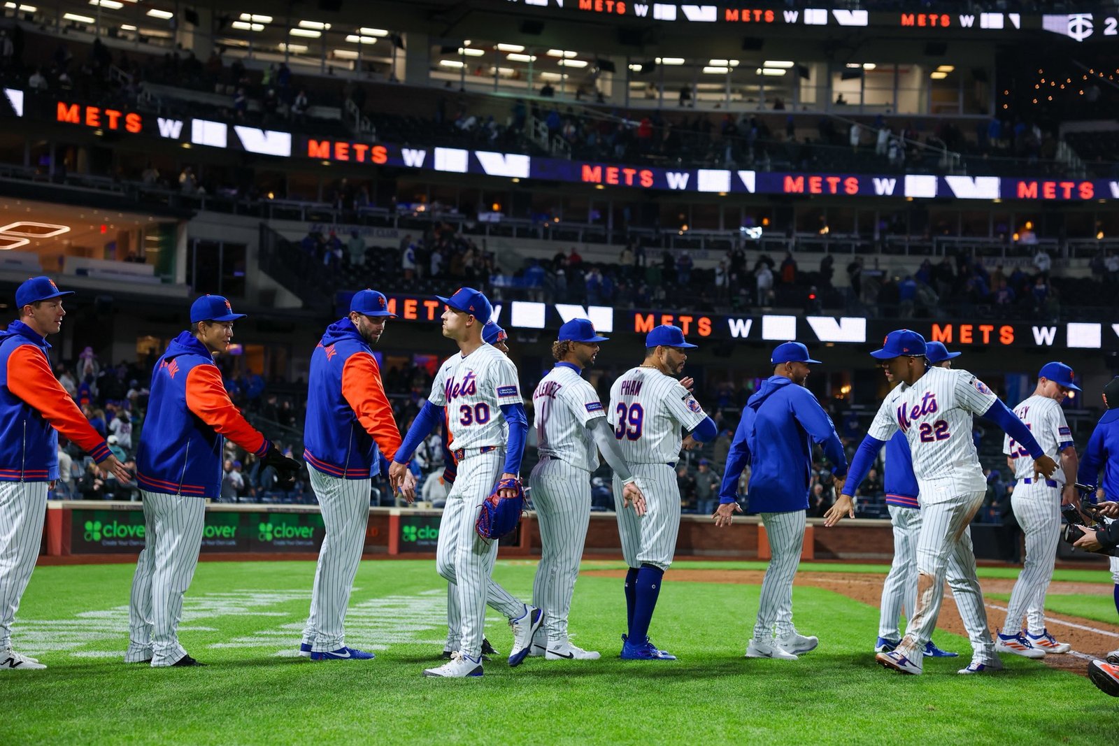 Con el marcador empatado 2-2 en la parte baja de la octava entrada y el lanzador derecho Justin Topa en el montículo, los Mets tenían corredores en primera y segunda con dos outs cuando Mark Vientos conectó un elevado corto que cayó frente al jardinero derecho Matt Wallner, permitiendo que Brett Baty anotara la carrera de la ventaja.
