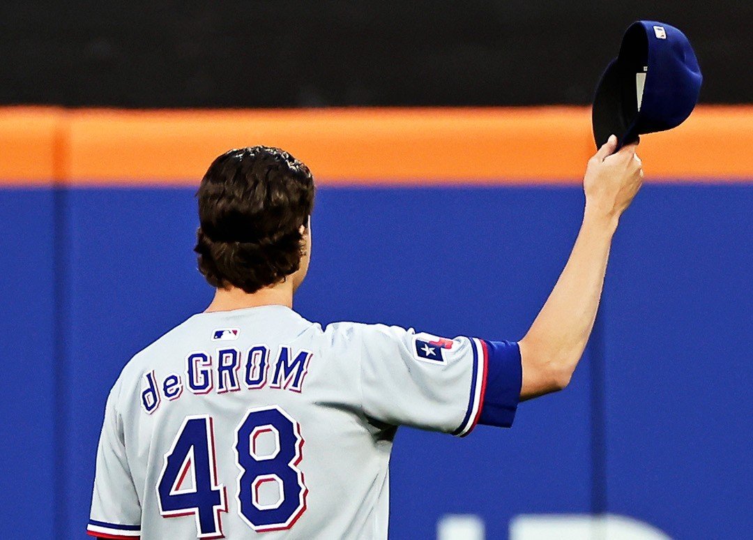 deGrom (12-7), ganador del premio Cy Young en dos ocasiones cuando lanzaba para los Mets de 2014 a 2022, permitió tres carreras y cuatro hits en siete entradas. Retiró a sus últimos 15 rivales.