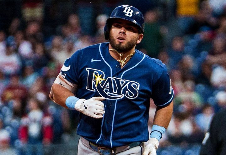 El mexicano Jonathan Aranda abrió la octava con un cuadrangular por la línea del jardín derecho ante Hunter Gaddis (0-1) y el dominicano Junior Caminero pegó un sencillo. El corredor emergente Richie Palacios se robó la segunda y anotó con el hit de Vilade por el central.