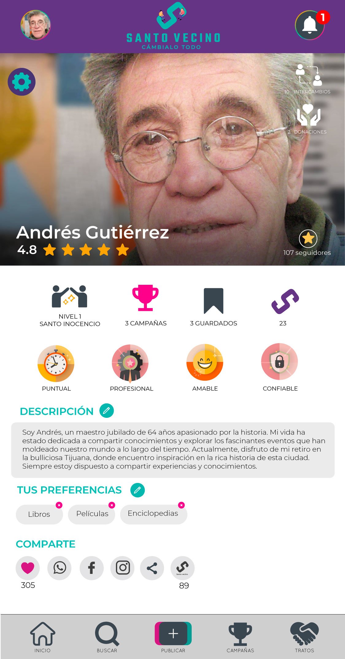 Mediante la plataforma filantrópica de Santo Vecino se reactivó un maestro jubilado de historia.