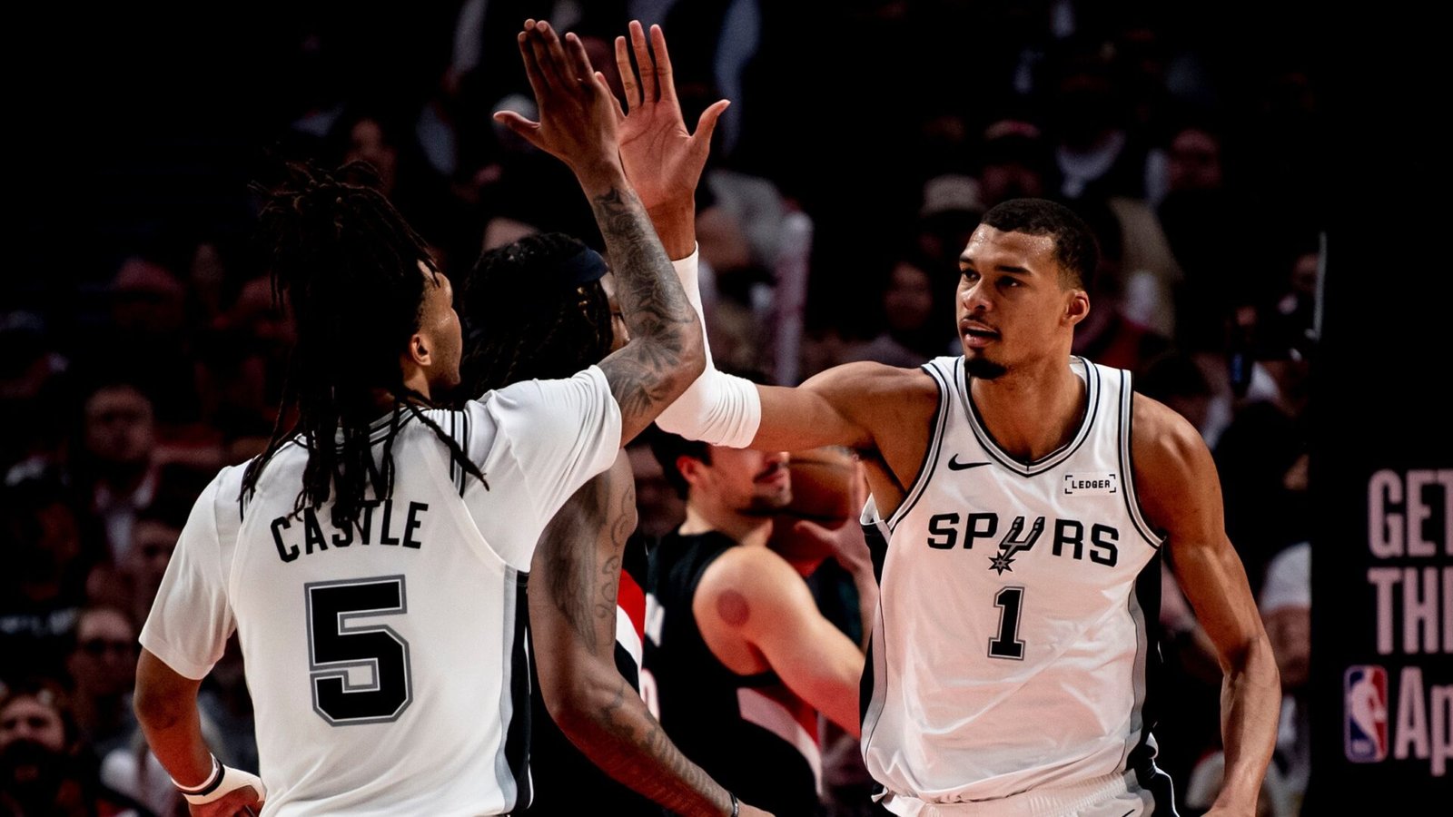 Wembanyama, quien figuraba como duda antes del partido, fue titular y provocó exclamaciones del público en el Moda Center con una clavada contundente cuando faltaban 9:58 para el final de la primera mitad.