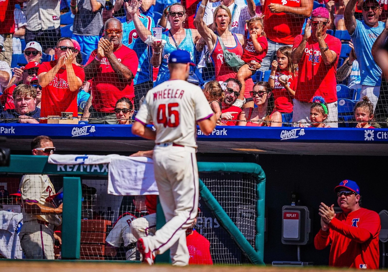 Después de que Wheeler ponchara a Stephenson con su lanzamiento número 100 para terminar la octava entrada, J.T. Realmuto conectó un sencillo con un out. Stott le siguió con su sexto jonrón de la temporada, conectando una recta por el centro de Santillán.